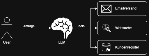 Nach wie vor stecken hinter jeder KI-Anwendung schlichtweg „Large Language Models“ (LLMs), die durch intensives Training Wortteil für Wortteil generieren. Vereinfacht gesagt wird dabei aufgrund komplexer statistischer Wahrscheinlichkeiten der nächste Wortteil ermittelt. Somit kann der Satz „Die Tomate ist“ wahrscheinlich mit „rot“ oder „lecker“ beendet werden – allerdings eher nicht mit „klug“. Wirklich wertvoll werden diese LLMs erst, wenn man ihnen Werkzeuge (oft auch: Tools) in die Hand gibt, mit denen Datenzugriff, Berechnungen oder Integrationen mit anderen Softwaresystemen möglich werden. Die Fähigkeit, diese Tools aufzurufen und mit entsprechenden Ergebnissen weiterzuarbeiten, wurde in den zugrunde liegenden LLMs in den letzten Jahren immer mehr antrainiert.